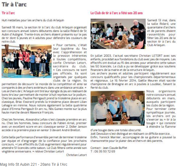 Page 2 : Tir à l'arc, le club fête ses 20 ans.