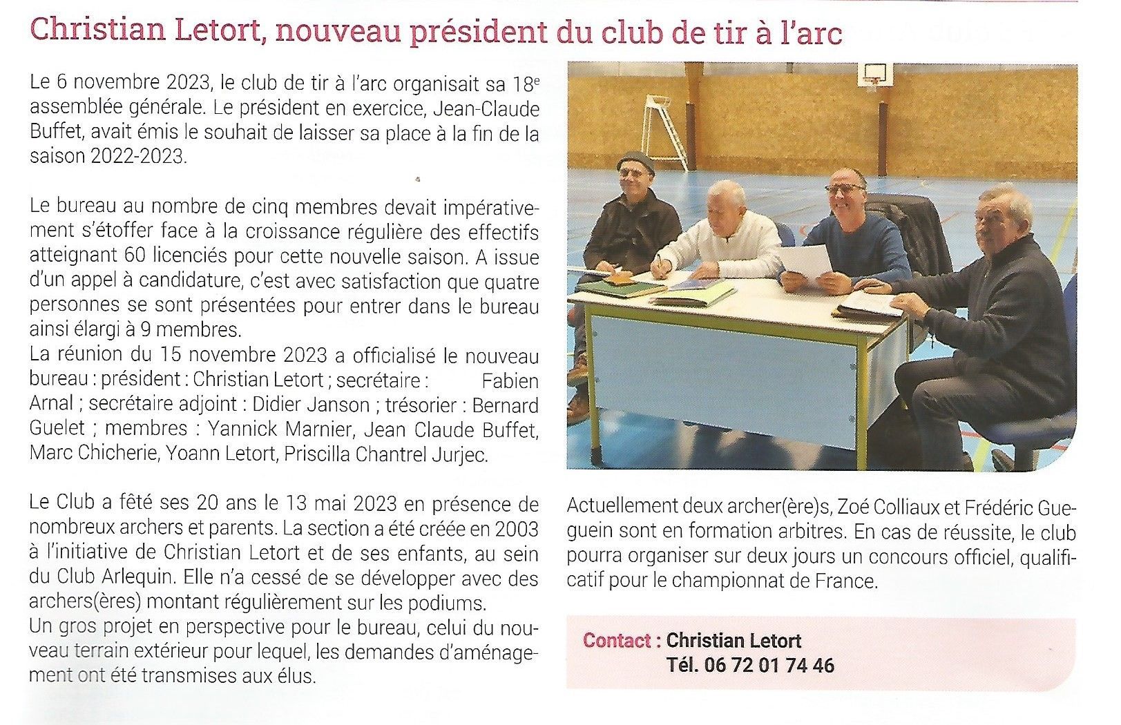 St-Aubin-Info 224 Janv-Fév-Mars 2024 : Christian Letord, nouveau président du club de tir à l'arc