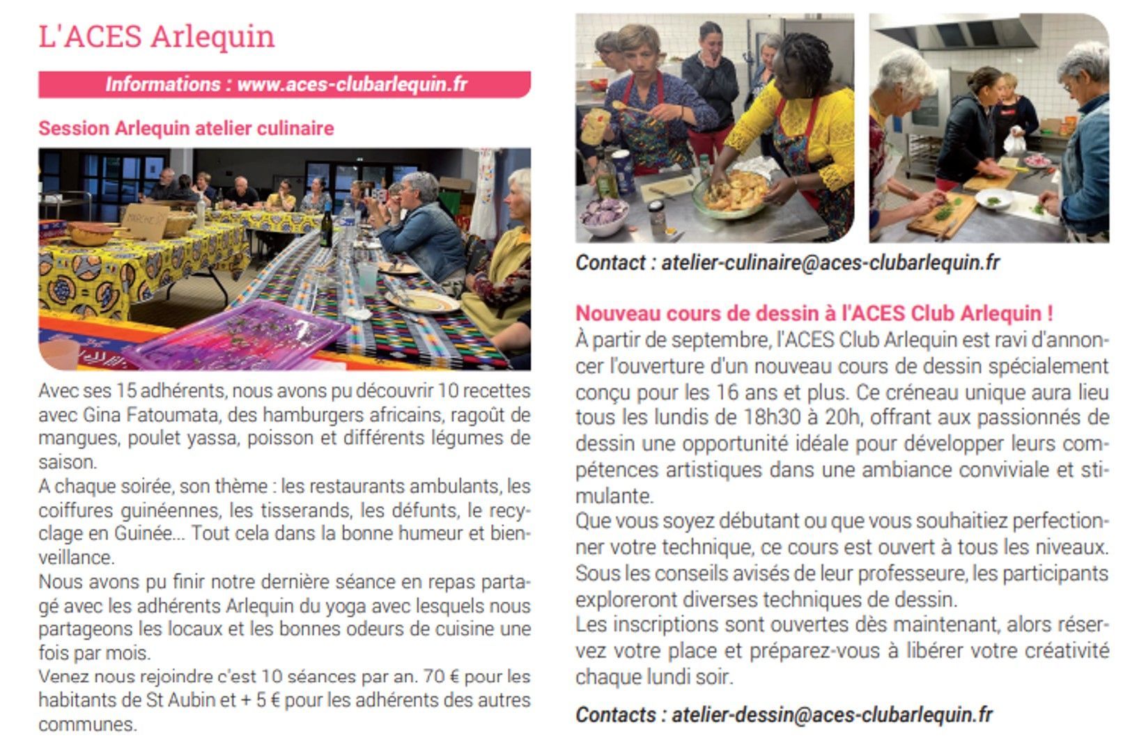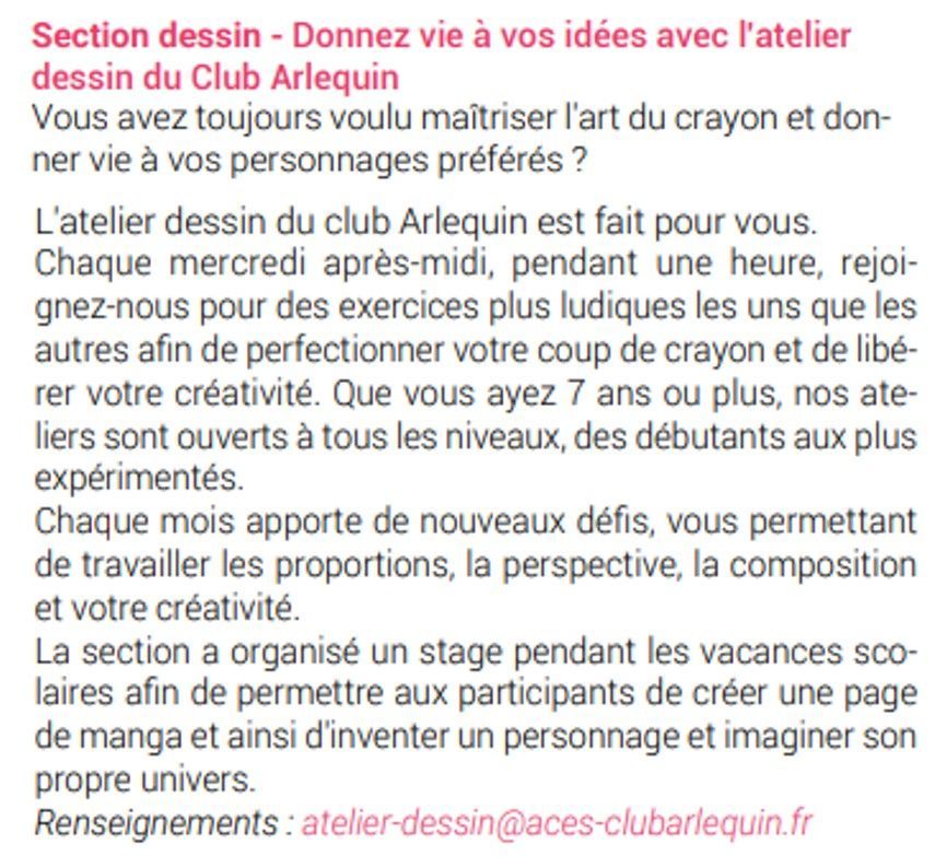 St-Aubin-Info 226 Juil.-Août-Sept. 2024 : Nouveau cours dessin à l'ACES Club Arlequin