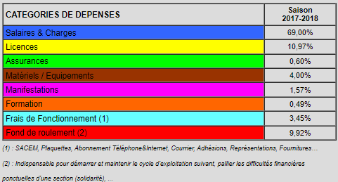 Près de 80% de vos cotisations correspondent aux dépenses incompressibles : salaires et charges, licences aux fédérations et assurance, matériels et équipements.
